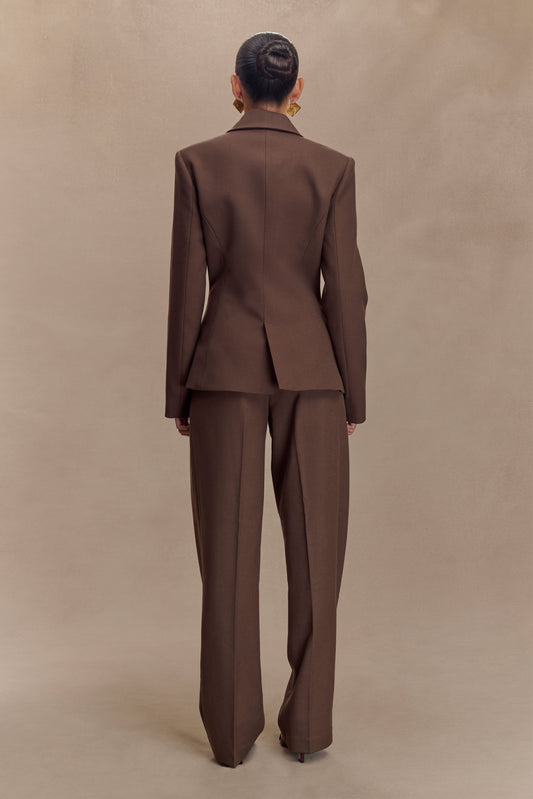 The MAX Cinched Waist Blazer is a refined take on classic tailoring, designed to sculpt and empower. Featuring a notched lapel, V-neckline, and structured shoulder pads, this blazer flatters with a cinched, fitted waist and functional button front closure. Faux front flap pockets add a clean finish, while full lining ensures all-day comfort and polish. Pair with the Penelope Pleated High Waisted Pants for a power pairing that blends timeless structure with modern sophistication.