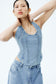Denim Corset Halter Top - Classic Blue