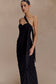 Chiffon Gathered Maxi Dress - Black