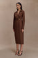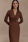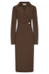 The MIKAILA Asymmetric Shirt Dress brings a directional twist to classic tailoring. Featuring an asymmetric collared neckline and a cross-front opening that secures with an internal snap button closure, it’s finished with a decorative gold button for subtle polish. Long sleeves with buttoned cuffs add structure, while a centre back split ensures ease of movement. Cut to a midi length and left unlined for a lightweight drape, this dress is a refined balance of sharp tailoring and modern minimalism.