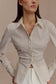 Tie Back Cotton Shirt - Beige Pinstripe