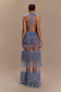 Mesh Ruffle Halter Maxi Dress - Dusty Blue
