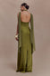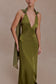 Draped Shoulders Satin Maxi Dress - Khaki