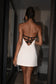 The NEEKA is a strapless mini dress with a low sweetheart neckline and flared skirt. Three beautiful contrast bows are lined up at the centre back, adding visual texture and a touch of feminine charm. The back itself is low with a deep V-shaped neckline. Airy tulle underlayers add playful volume while the tucked waist accentuates a slender, curvy silhouette. Flatteringly feminine, NEEKA is the perfect blend of childish whimsy and classical charm. Complete the look with solid statement jewellery like Hilda Drop Earrings.