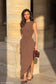 Shirred Asymmetric Midi Dress - Mocha