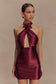 The NYLAH Beaded Halter Mini Dress is a masterpiece of elegance and craftsmanship, featuring a halter neckline adorned with a stunning flower neck design for a bold, feminine statement. A centre-front cutout adds a touch of allure, while the bodycon fit and mini length create a sleek, figure-enhancing silhouette. Hand-beaded with shimmering gold beads, this dress radiates luxury and sophistication. Finished with a centre-back zip and full lining for comfort, it’s a show-stopping piece perfect for your most glamorous occasions.