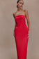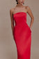 The OPHELIA Peplum Satin Maxi Dress is designed to make an impression through shape and structure. Featuring a clean strapless neckline with internal gripper tape for secure wear, it offers a smooth, sculpted fit through the bodice. Subtle internal padding at the hips creates a softly defined peplum effect, enhancing the column silhouette with modern dimension. Fully lined for comfort and finished with an invisible centre-back zip, this long midi-length dress balances elegance with intent — refined, confident, and made for moments that unfold into the evening.