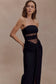The PAULINA Cut Out Strapless Maxi Dress blends minimalist structure with contemporary edge. Designed with a sleek strapless neckline, it features mesh paneling and a centre front opening that reveal subtle glimpses of skin while sculpting the silhouette. Fully lined for comfort and finished with an invisible side zip for a seamless look, this maxi-length design creates an elongated, figure-contouring shape. Modern, refined, and effortlessly striking, this dress brings elevated allure to any evening moment.
