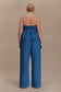 Make a statement with the PAULINE Strapless Denim Top, a modern twist on classic denim. Featuring a structured bust panel for a flattering fit and a gathered peplum detail that adds a touch of femininity, this top is both bold and stylish. The strapless design creates a sleek silhouette, while the centre-back zip ensures a seamless finish. Pair it effortlessly with the Rayne Wide Leg Denim Jeans for a coordinated look that exudes confidence and contemporary charm, perfect for daytime outings or casual evenings.