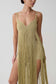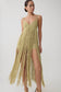 The RENEE Lurex Crochet Maxi Dress combines delicate crochet with subtle shimmer. Designed with a V neckline and shoulder straps, it features crochet bust panels that add texture through the bodice. The metallic lurex fabrication catches the light, while a fringe hem adds movement to the maxi-length silhouette. Unlined to highlight the crochet detail, it comes with matching mid-rise crochet shorts with an elastic waistband for comfortable coverage.