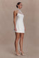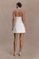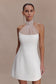 The RILEY Halter Suiting Mini Dress brings a modern tailoring perspective to a refined mini silhouette. Designed with a halter neckline secured by three back button closures, it features a lightweight tulle panel at the neckline for a subtle, sheer contrast. Fully lined for a smooth, polished fit, this A-line dress is finished with an invisible side zip for seamless wear. Structured yet fluid, this mini-length style is composed, confident, and designed for moments that unfold into the evening.