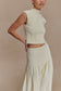 The ROMAINE High Neck Bandage Knit Top is a refined take on elevated minimalism. Featuring a high neckline, sculpted cap sleeves, and darted panel lines for a flattering, tailored fit, this top is crafted in a supportive bandage knit that contours the body. A clean back zip closure ensures a seamless finish. Pair it with wide-leg pants for modern polish or style with a skirt to balance structure with softness.
