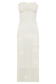 The SAMANTHA Crochet Midi Dress With Flowers is a sculptural statement in artisanal detail. Designed with a strapless neckline secured by internal grip tape for support, it contours the body in sheer crochet fabrication. Dimensional crochet florals add depth and movement, while draped pearl detailing introduces a refined contrast. Falling to a midi length and left unlined for a sheer, directional finish, this piece balances craftsmanship with contemporary confidence.