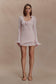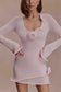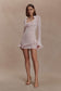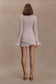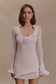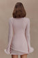 The SAMIRA Knit Long Sleeve Mini Dress brings a romantic, handcrafted feel to a modern, feminine silhouette. Designed with a flattering V neckline and long sleeves, this dress features wave-edged sleeve and hem detailing that adds fluid movement to the body. Intricate wave panels with floral accents create subtle texture throughout, while the fluted hemline offers a playful, elevated finish. Crafted from a lightweight knit and left unlined for natural drape, this dress pairs softness with sculptural appeal.