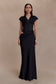 The SAPHIRA Shirt Corset Maxi Dress redefines classic tailoring with a romantic finish. Featuring a V-neckline with a curved seam across the bust, it’s sculpted with a mesh corset and internal boning for a structured, body-defining fit. Gathered detailing through the bust cups adds subtle texture, while the draped asymmetrical skirt falls fluidly to a maxi length. Sleeveless and fitted with a discreet side zip, this dress is a statement in contrast—balancing sharp lines with soft movement.
