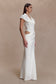 The SAPHIRA Shirt Corset Maxi Dress redefines classic tailoring with a romantic finish. Featuring a V-neckline with a curved seam across the bust, it’s sculpted with a mesh corset and internal boning for a structured, body-defining fit. Gathered detailing through the bust cups adds subtle texture, while the draped asymmetrical skirt falls fluidly to a maxi length. Sleeveless and fitted with a discreet side zip, this dress is a statement in contrast—balancing sharp lines with soft movement.