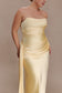 Strapless Maxi Dress With Waist Tie - Lemon