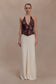 Lace And Satin Halter Maxi Dress - Ivory/Chocolate
