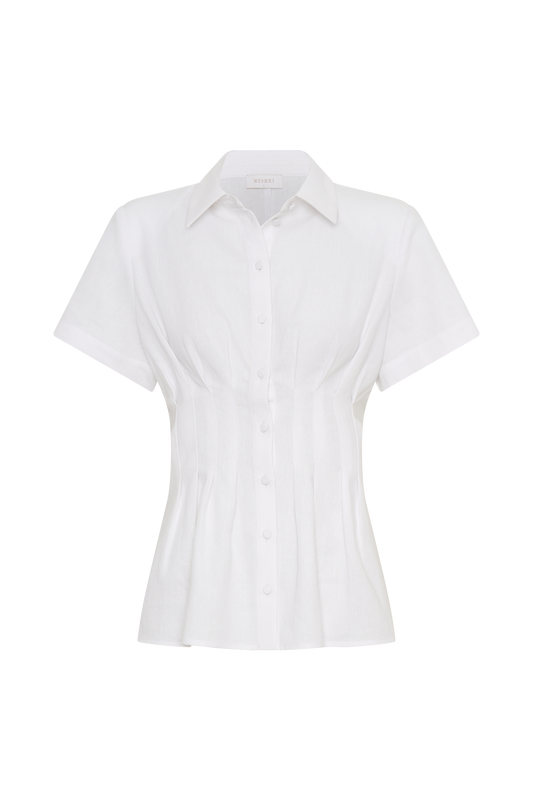 Curved Waist Midi Skirt - White