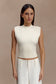 The SHARPAY Sleeveless Knit Top is a modern staple with a confident edge. Featuring a crew neckline framed by ribbed trims, it’s crafted from a thick knit fabrication that holds its shape while flattering the frame. Shoulder pads introduce subtle structure to the sleeveless silhouette, giving this top a sharp, tailored finish. Designed for effortless styling, this top balances minimal design with maximum impact.