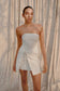 The STEPH Strapless Linen Mini Dress is your warm-weather wardrobe essential—equal parts flirty and refined. Featuring a classic strapless neckline with a playful tie-front detail, this mini silhouette flatters with front and back darts that contour the body. Fully lined for comfort and finished with an invisible side zip, this dress is your go-to for long lunches, rooftop moments, or any sun-drenched plans on your calendar.
