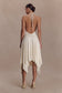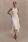 The SYLVIE Modal Hankie Midi Dress is designed to move with understated sophistication. Featuring a softly draped cowl neckline and an adjustable back neck tie, it offers a personalised fit while maintaining a relaxed, fluid silhouette. The open back is finished with a delicate knot detail, adding a subtle point of allure. Cut with a hankie-style skirt that creates natural movement and flow, this fully lined midi-length dress delivers ease and refinement in equal measure — perfect for warm evenings and elevated occasions.