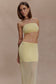 The TANYEL Knit Bandeau Top offers a sleek, minimal silhouette crafted from a thick knit fabrication that hugs the body with soft structure. Designed strapless with an elasticated top edge, it stays comfortably in place while delivering a smooth, streamlined finish. Simple yet elevated, this top is a foundation piece for modern dressing — perfect for pairing with tailored separates, denim, or matching knitwear.