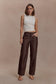 Faux Leather Mid Rise Pants - Dark Chocolate