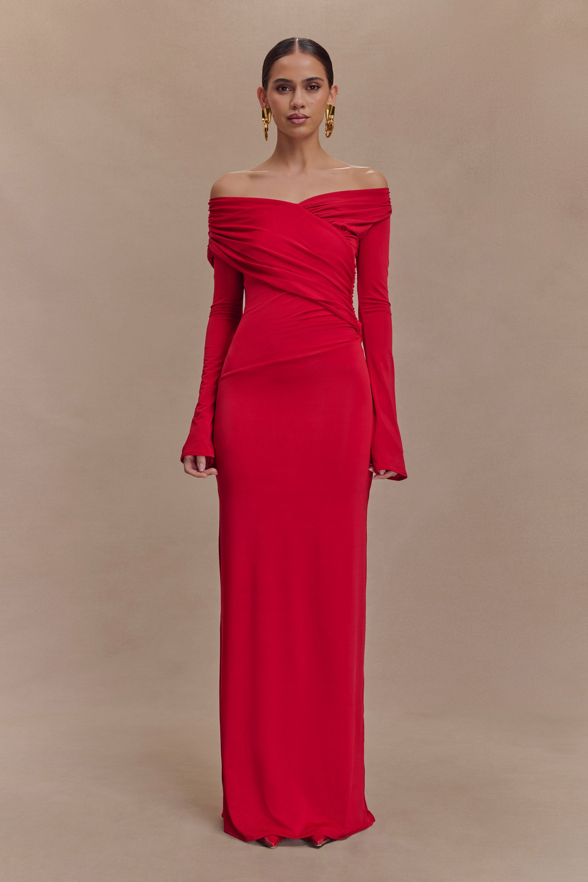 Therese Off Shoulder Ruched Maxi Dress - Red