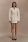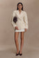 The WESLEY Structured Blazer redefines suiting with sharp detail and directional design. Featuring a double-peaked wide collar and a double-breasted button front, it’s balanced by structured shoulder pads and a fitted waist for a sculpted silhouette. Drop shoulders add ease, while long sleeves with pleated crossover cuffs bring versatility—wear buttoned for polish or unfastened for a wider sleeve shape. Functional flap pockets, a longline cut, and full lining complete this blazer, making it a statement layer for both day and evening dressing.