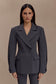 The WESLEY Structured Blazer is a sharp, longline silhouette designed to command attention. Featuring a double-peaked wide collar and a double-breasted button opening, it’s framed with structured shoulder pads and a fitted waist for a defined shape. Functional flap pockets bring utility, while the drop shoulder and pleated crossover cuffs add a contemporary twist—wear them buttoned for polish or unbuttoned for a wider sleeve effect. Fully lined and cut to a longline length, this blazer balances classic tailoring with directional detail.