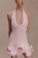 Halter Neckline Mini Dress With Tubed Hem - Baby Pink