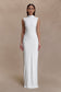 The WISTERIA Slinky Maxi Dress With Scarf is a refined silhouette with subtle drama. Featuring a sleek boat neckline and princess seam lines for shaping, it sculpts the frame in a fitted bodycon cut. Designed with a flowing scarf detail for versatile styling — draped, wrapped, or left cascading — it’s finished with a back leg split for ease of movement. Fully lined and cut to a maxi length, this dress is both classic and sophisticated.