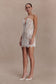 The ZOEY Lace Corset Mini Dress is designed to shape and define with confidence. Featuring a strapless neckline with a deep V plunge, it frames the décolletage while maintaining a strong, sculpted silhouette. Panelled construction with internal boning provides structure through the bodice, complemented by an internal adjustable waist stay for added support and a secure fit. Fully lined for comfort, this mini-length style is finished with a scalloped hem that softens the look with subtle texture, and a discreet side invisible zip for seamless wear. Bold yet considered, this dress delivers impact through precision and detail.